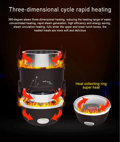 Vous pouvez simplement brancher le câble et profiter d'un repas chaud assis dans votre siège ou en déplacement avec notre boîte à lunch électrique maintenant !