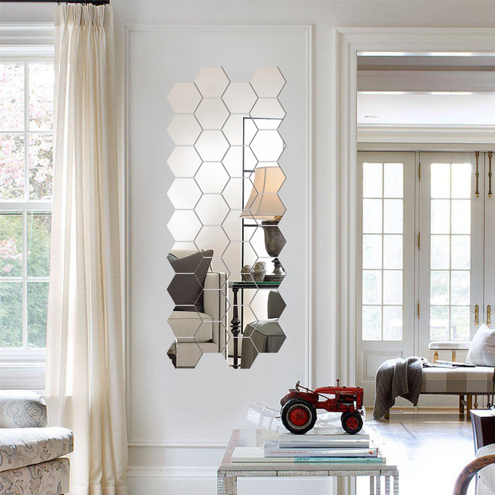 Sticker mural miroir acrylique hexagonal